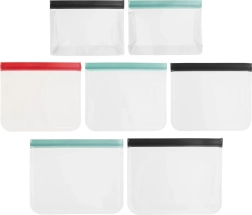 Praktikus, 7 darabos, átlátszó zipzáras tasakkészlet három méretben, mindennapi élelmiszer-tároláshoz otthon és útközben. A légmentes zipzáras záródásnak köszönhetően tovább frissen tartja a tartalmat, strapabíró és többször használható, hűtőhöz és fagyasztóhoz is alkalmas, valamint átlátszó a gyors tartalom-ellenőrzésért.