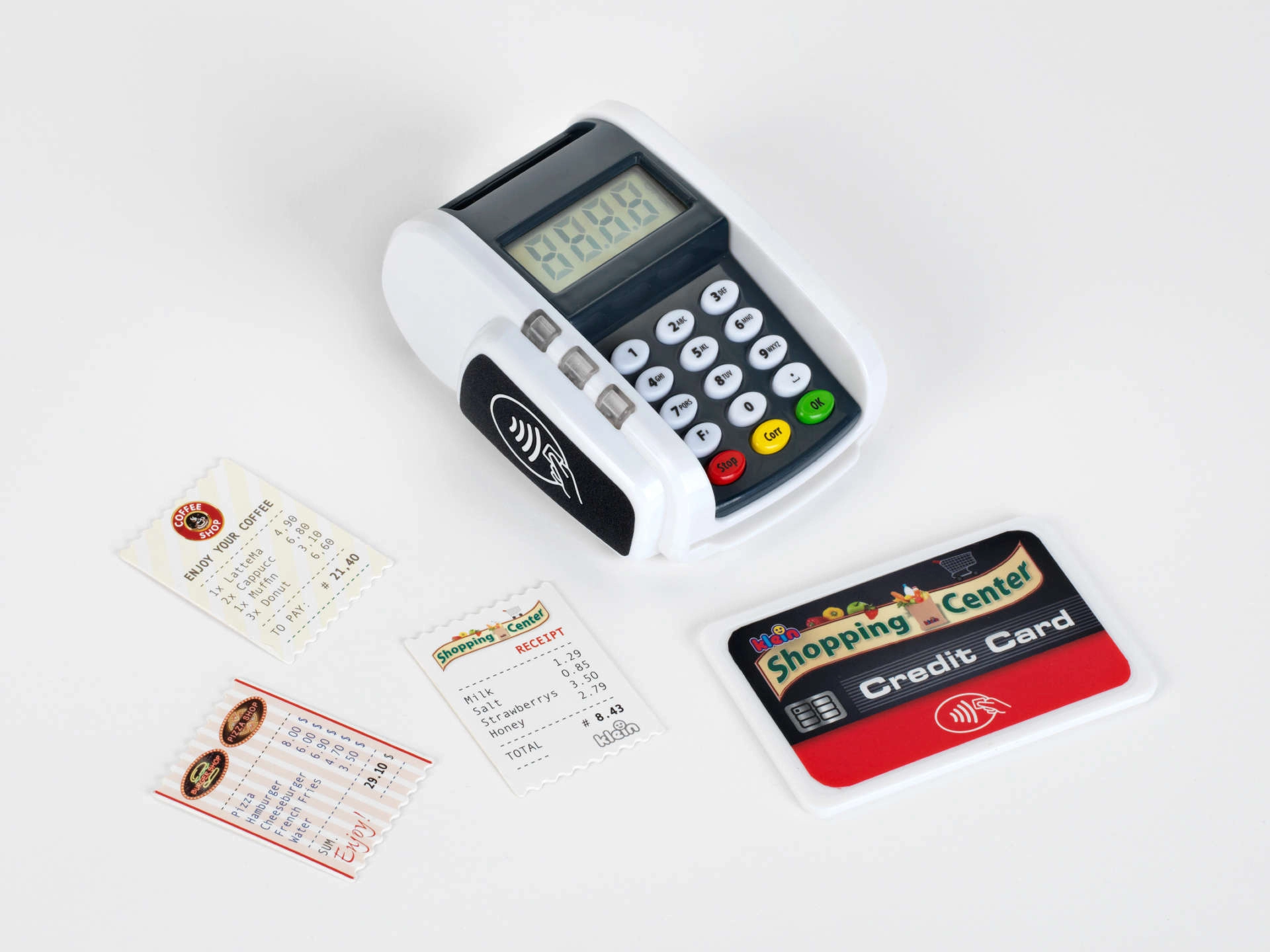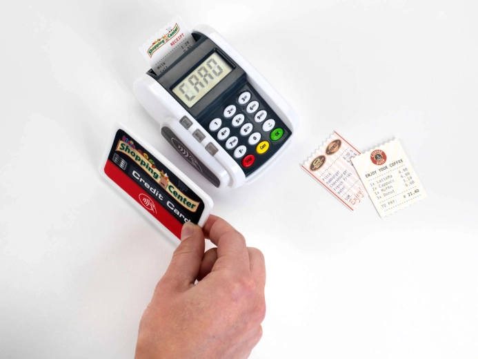 Ez a kompakt terminál hűen utánozza a valódi eszközt: a gyerekek nyomkodhatják a számbillentyűzetet, hozzáérinthetik a bankkártyát, és „nyugtákat” nyomtathatnak a valósághű pénztáros játékhoz. A fény- és hanghatások minden tranzakciónak megadják a kellő realisztikus hangulatot, és támogatják a szociális készségek fejlődését.