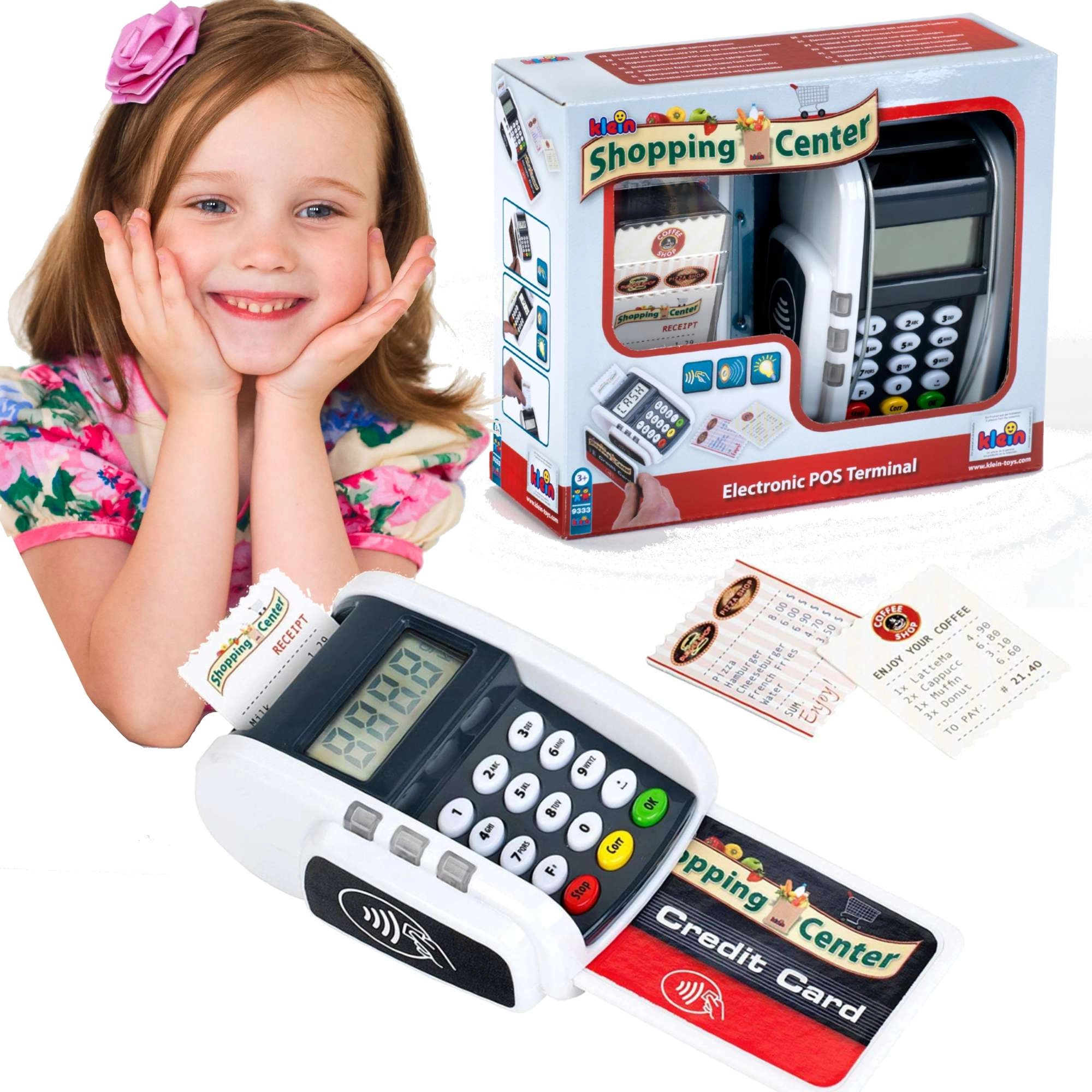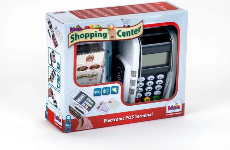 A KLEIN márka élethű gyermek fizetési terminálja pénztárhoz hasonló szórakozást nyújt. Funkcionális gombokkal, érintésmentes fizetésolvasóval, fény- és hanghatásokkal rendelkezik, és játékos formában fejleszti a gyerekek képzeletét bolt- vagy éttermes szerepjáték közben.