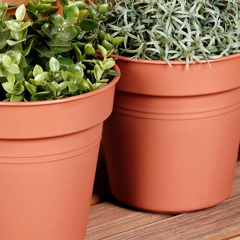 A klasszikus kerek forma és a tégla árnyalat illik a modern és a rusztikus stílushoz is. Remek választás konyhai fűszerekhez az ablakpárkányon, szezonális virágokhoz az erkélyen, vagy zöld növényekhez a teraszon.