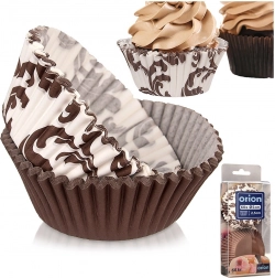 Praktikus készlet 60 papír muffin- és cupcake-kosárkával, 6,5 cm átmérővel az egyszerű sütéshez és tálaláshoz. Hőálló egészen +220 °C-ig, megakadályozza a tészta odaégését és rátapadását a formára, valamint biztosítja az egyenletes kelést. A csomagban barna és fehér kosárkák barna mintával – dekoratív megjelenés minden alkalomra.