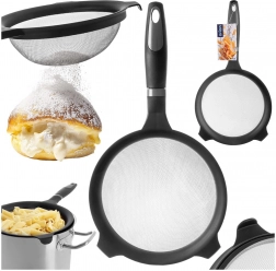 Sokoldalú konyhai szűrő a mindennapi főzéshez és sütéshez. A sűrű, finoman szőtt rozsdamentes hálónak köszönhetően precízen leszűrheti a teát vagy alaplevet, átszitálhatja a lisztet, illetve porcukorral díszítheti a desszerteket. A könnyű szerkezet ergonomikus fogantyúval kényelmes fogást és jó irányíthatóságot biztosít munka közben.