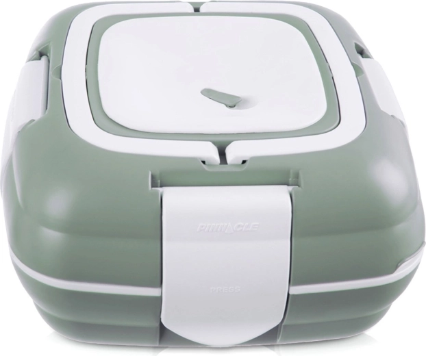 A tető négy masszív klipsszel és kiengedőszeleppel biztosítja a tömítettséget és a megerőltetés nélküli nyitást.