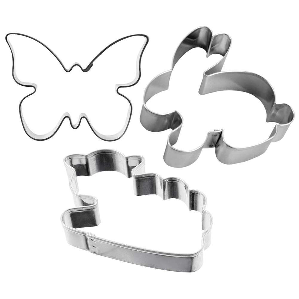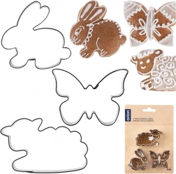Méretek: bárány 7 × 4 cm, nyuszi 5 × 5,2 cm, pillangó 5 × 4,3 cm. Egyszerű karbantartás a mosogatógépben moshatóságnak köszönhetően. Az európai szabványok szerinti minőségi kivitel hosszú élettartamot és megbízható eredményt garantál minden sütésnél.
