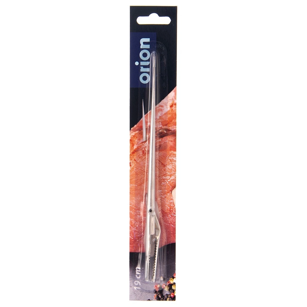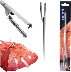 Ez a rozsdamentes acél tűzdelő tű megbízható segítőtárs a szaftos, illatos sültek készítéséhez. Lehetővé teszi szalonnacsíkok vagy zöldségek egyszerű behelyezését marhába, sertésbe, baromfiba vagy vadba. Masszív kivitelét és egyszerű kezelhetőségét egyaránt értékelni fogja otthoni konyhában és professzionális vendéglátásban.