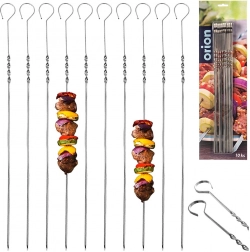 A rozsdamentes acél nyársak készlete ideális húshoz, zöldséghez és gyümölcshöz készült saslikokhoz. A lapos kialakításnak köszönhetően sütés közben nem fordulnak el az alapanyagok, ami egyenletes átsülést és tökéletesen ropogós eredményt biztosít. A masszív kivitel hosszú élettartamot és többszöri használatot garantál.