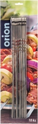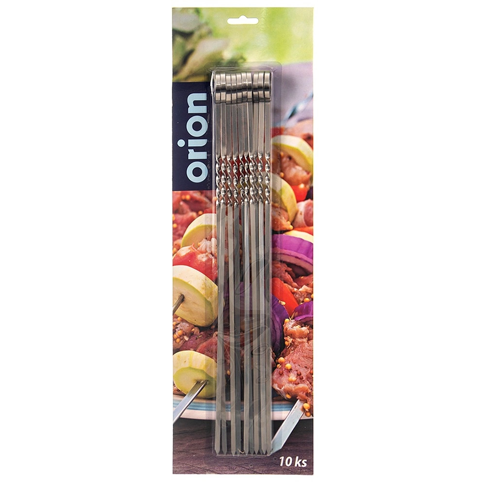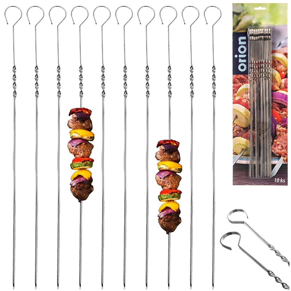 Praktikus, 10 darab hosszú nyársból álló készlet grillezéshez és sütéshez. Kiváló minőségű rozsdamentes acélból készült, lapos profilja megakadályozza az elfordulást, éles heggyel a könnyű felnyársaláshoz, és hurkokkal a kényelmes forgatáshoz. A 38,5 cm-es hossz egyenletes átsülést biztosít grillezőn és sütőben egyaránt.