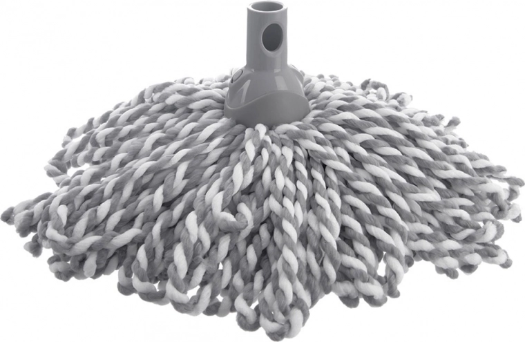A CLEAN SYSTEM sorozat cserélhető felmosófeje ideális a mindennapos takarításhoz a konyhában, a fürdőszobában és más helyiségekben. A fehér–szürke mikroszálas bojtok kiválóan abszorbeálják a vizet, és megfogják a port és a szennyeződéseket, így a padló csíkmentesen tiszta marad.