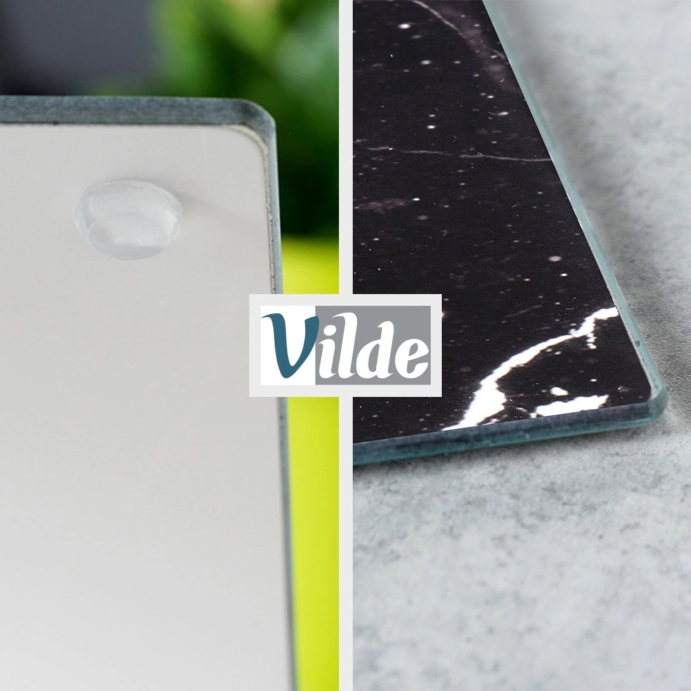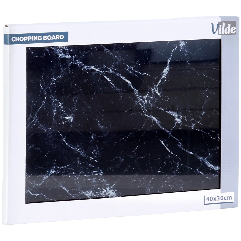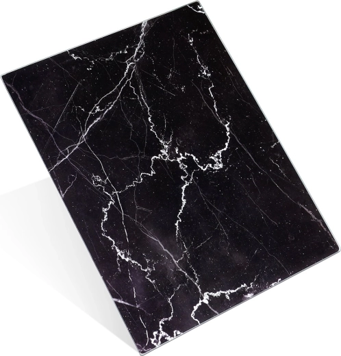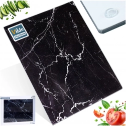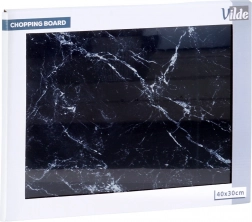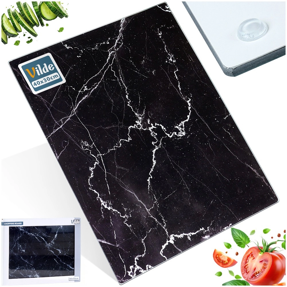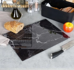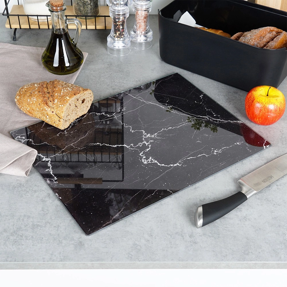 A vágódeszka minőségi edzett üvegből készült, amely higiénikus, nem porózus és könnyen tisztítható. A fekete márvány dekor stílust kölcsönöz konyhájának.