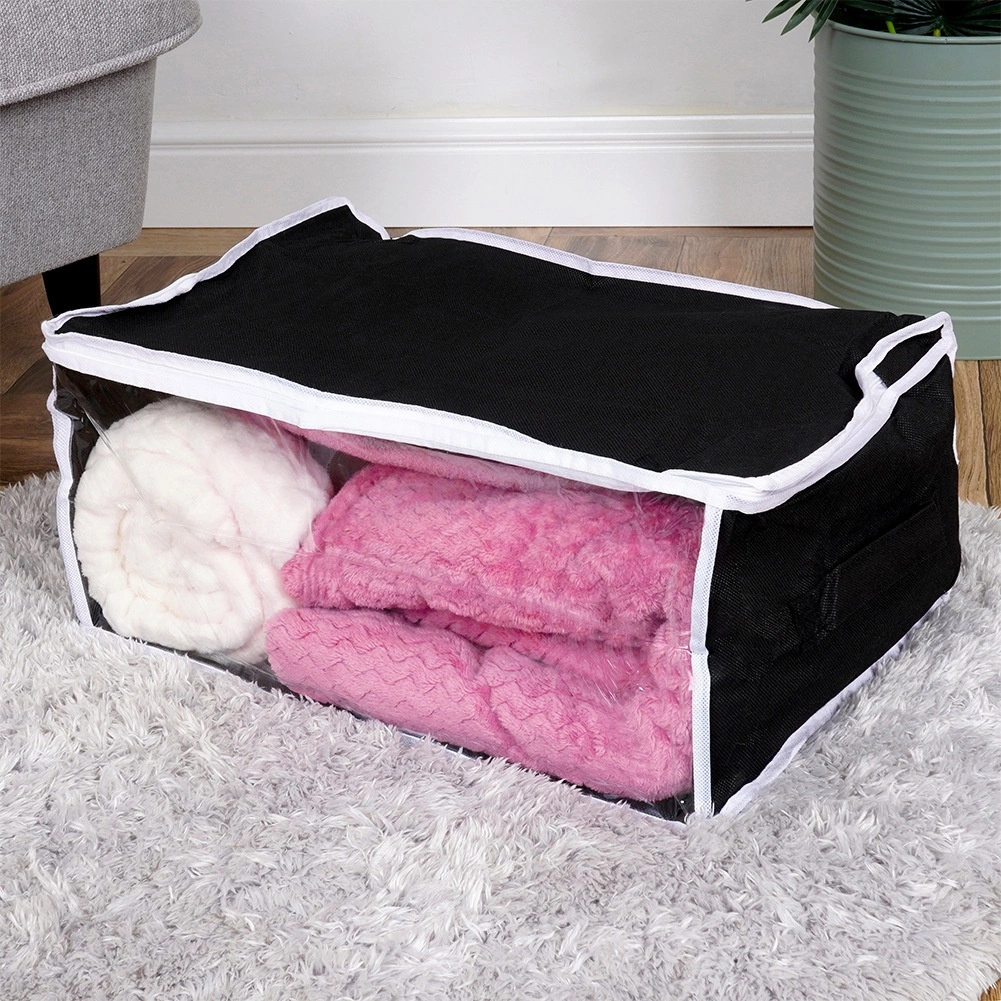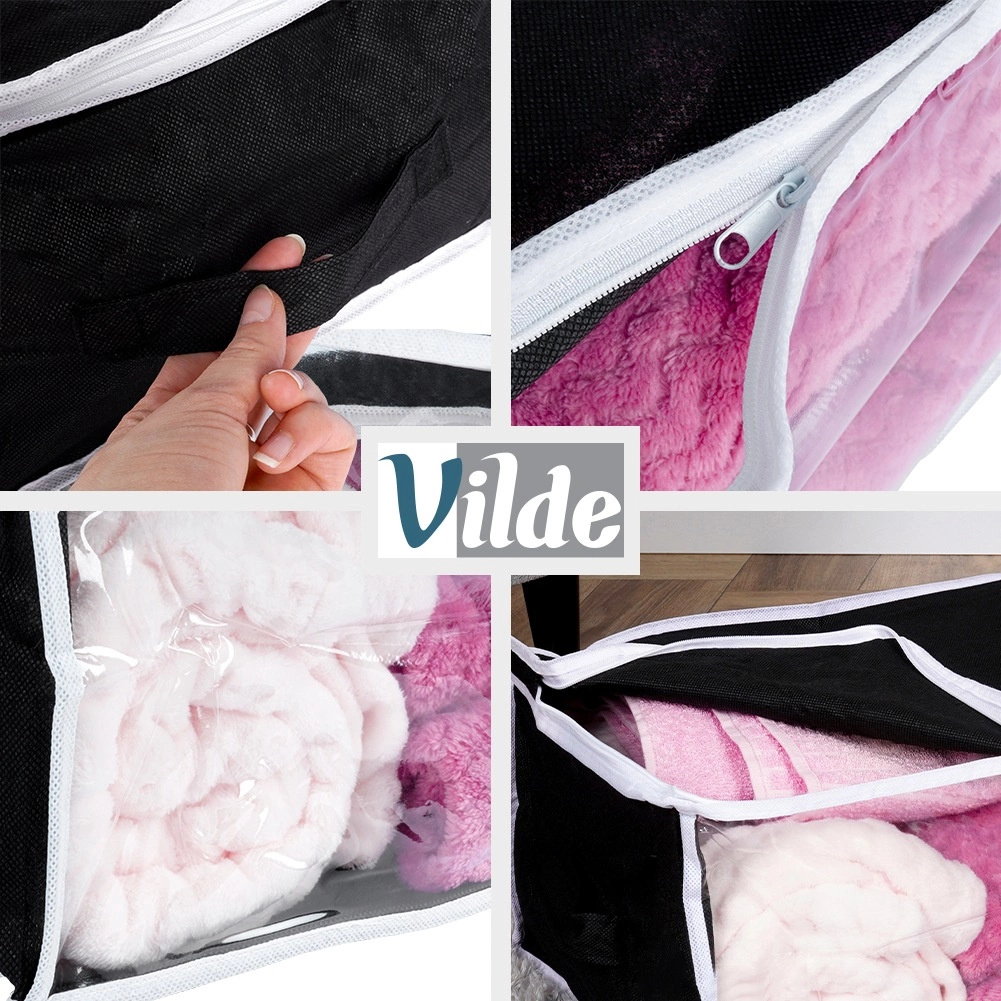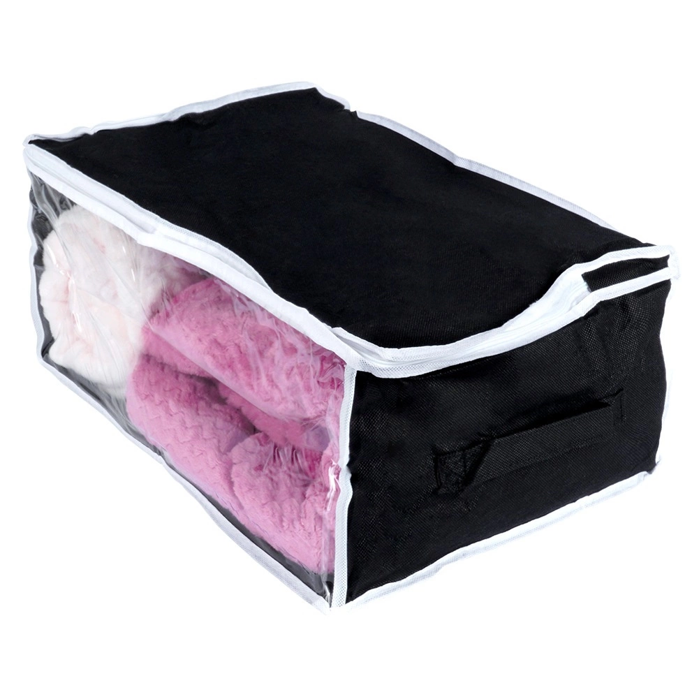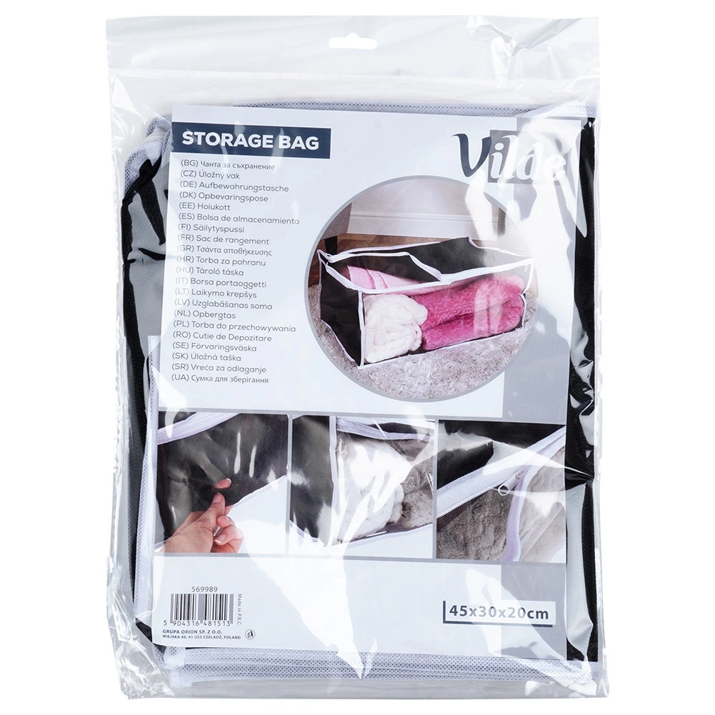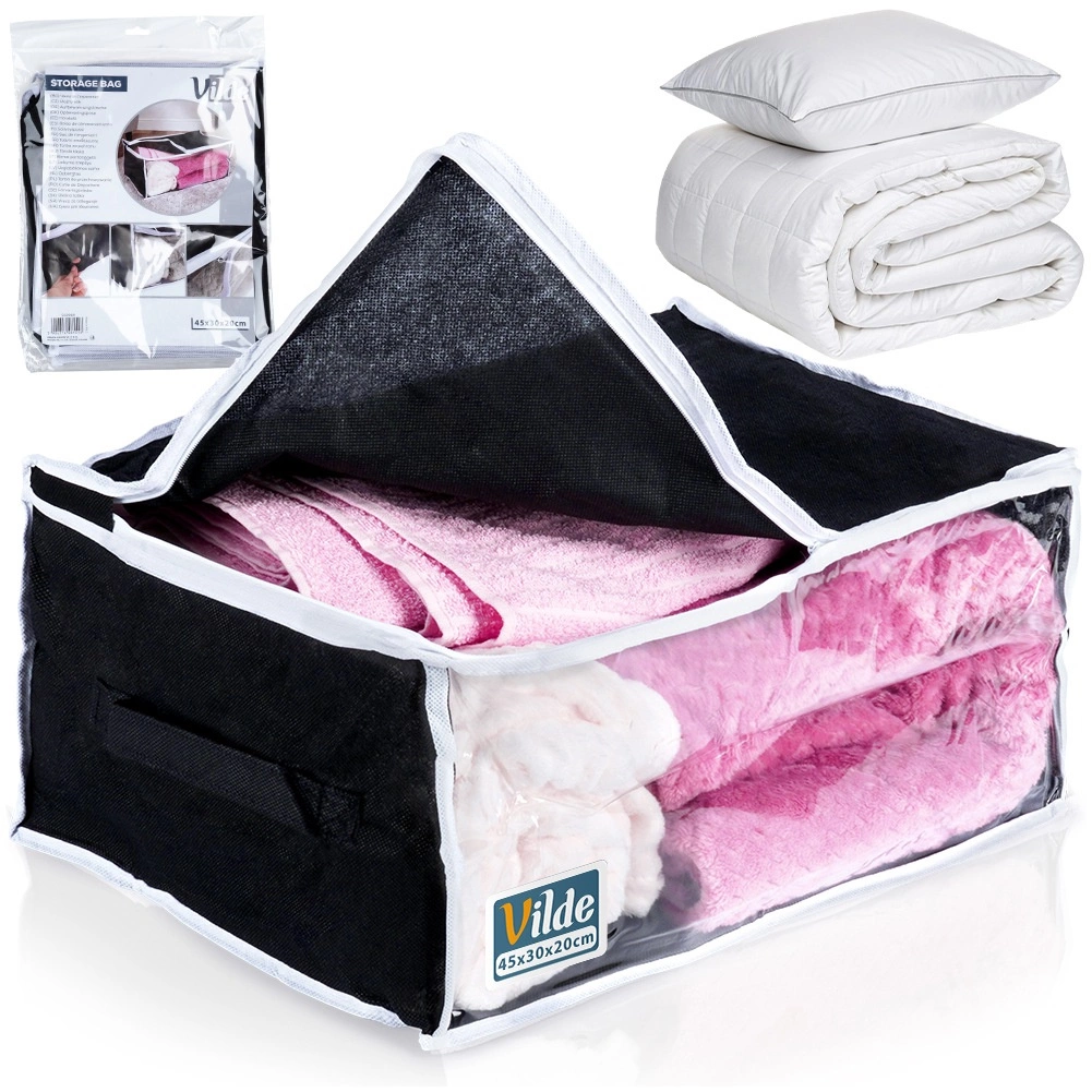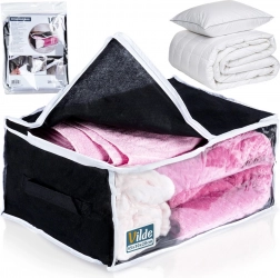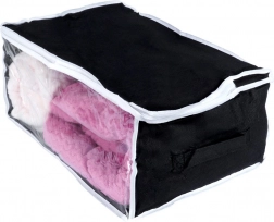 Praktikus tárolózsák ágyneműhöz, takarókhoz, párnákhoz és ruhákhoz, amely megóvja textíliáit a nedvességtől, a portól és a molylepkéktől. A átlátszó ablaknak, a kétirányú cipzárnak és a kényelmes fülnek köszönhetően mindent átláthatóan rendezhet és könnyen hordozhat – ideális szekrénybe és ágy alá is.