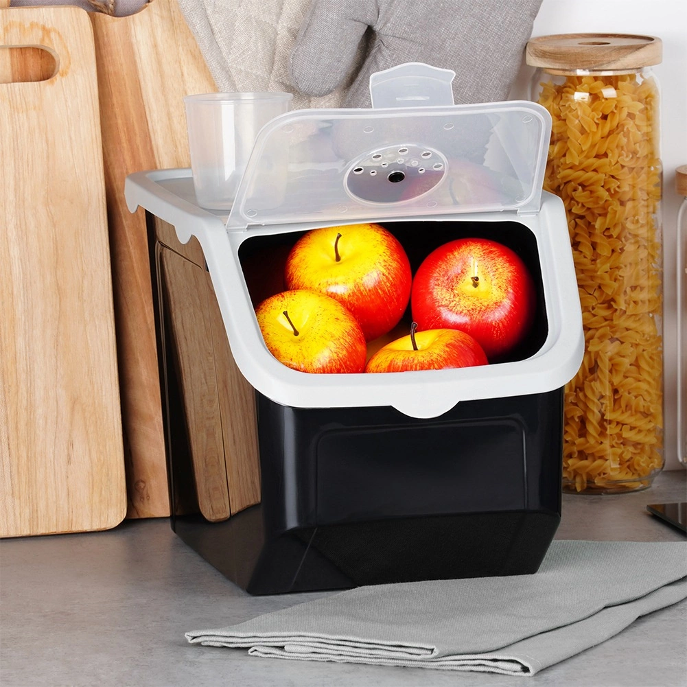Tartsa rendben a konyhát és frissen az élelmiszereket a tágas, 12 l-es dobozzal. Az átlátszó, felnyitható fedélnek köszönhetően kényelmesen ellenőrizheti a tartalmat, és könnyedén kiöntheti vagy kiveheti a szükséges mennyiséget. Az állítható szellőzőnyílások segítenek fenntartani a megfelelő légáramlást, így a gyümölcs és zöldség tovább megőrzi frissességét.