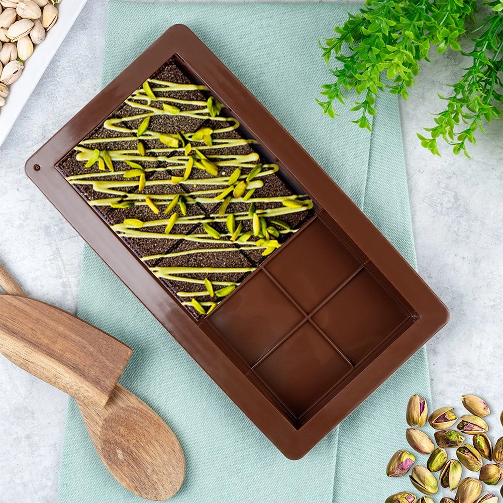 Ezzel a minőségi szilikon formával tökéletesen formázott csokitáblákat készíthet – a klasszikus tejcsokitól a diós, aszalt gyümölcsös vagy fűszeres változatokig. A rugalmas, tapadásmentes szilikon tiszta éleket és gond nélküli kifordítást biztosít kikenés nélkül.