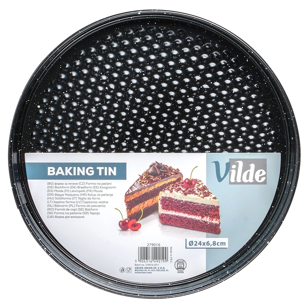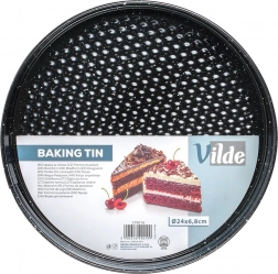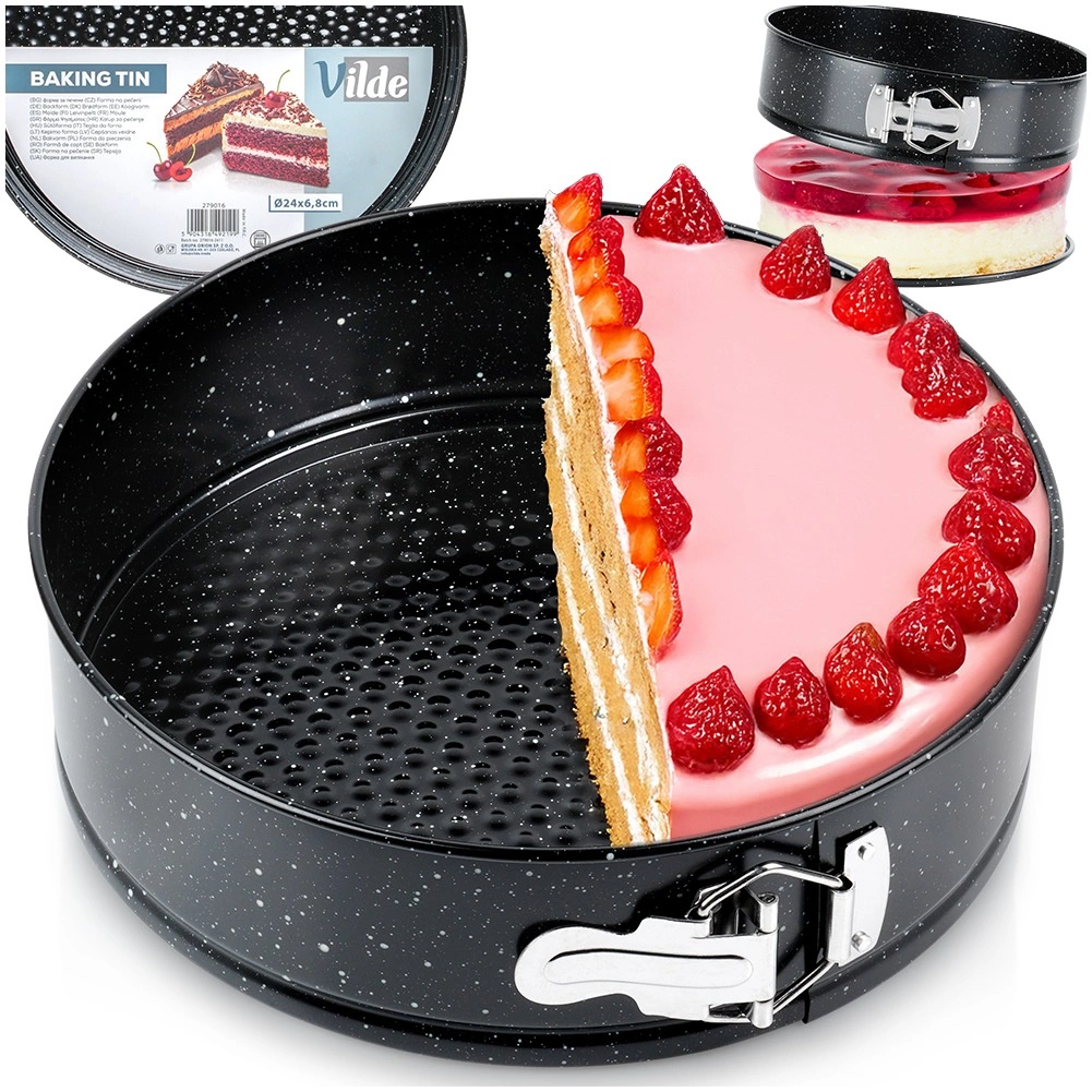 Praktikus, 24 cm átmérőjű kerek tortaforma strapabíró szénacélból, tapadásmentes gránit bevonattal. A kapcsos oldalfal és a kivehető alj révén a tortát vagy a cheesecake-et sérülés nélkül emelheted ki. Az anyag egyenletes sütést biztosít egészen 230 °C-ig, és megkönnyíti a tisztítást. Ideális mindennapi sütéshez tortákhoz, piskótalapokhoz, cheesecake-ekhez és rakott desszertekhez.