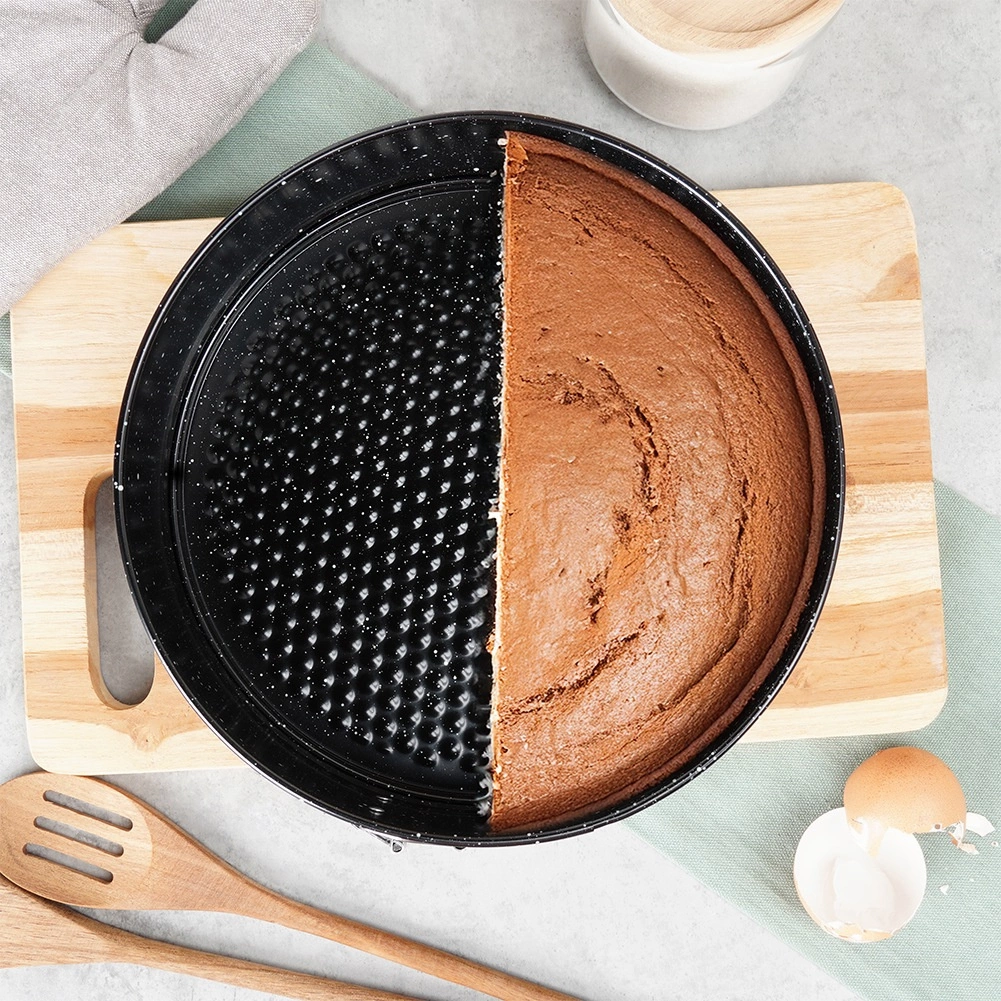 Az oldalsó kapocs egy pillanat alatt old, így a tortát vagy a cheesecake-et a forma megbontása nélkül, a forma torzítása nélkül emelheted ki.