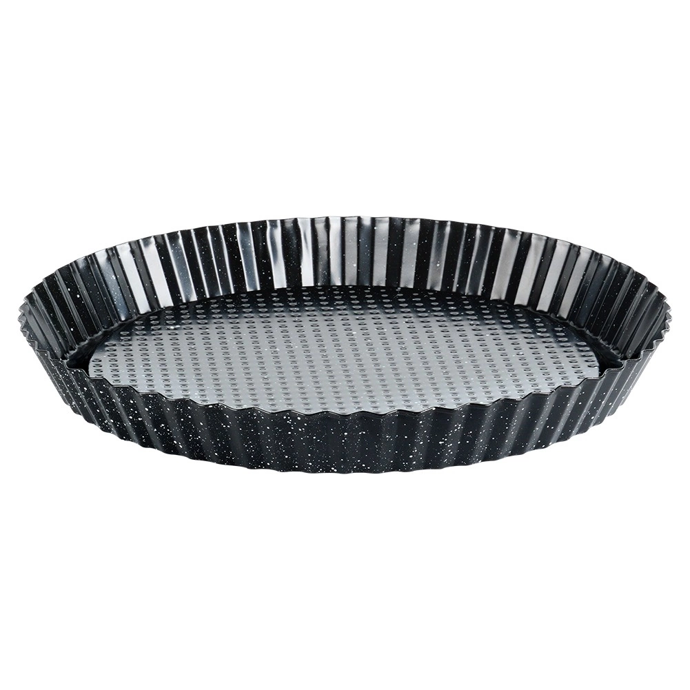 Fedezze fel a megbízható segítséget az otthoni sütéshez – a 28 × 3 cm-es gránit bevonatú tarte formát. A minőségi szénacél tapadásmentes gránit réteggel biztosítja a korpusz és a töltelék tökéletes átsülését, a kész desszert könnyű kivételét és a kényelmes tisztítást. A hullámos, profilozott perem professzionális megjelenést kölcsönöz süteményeinek.