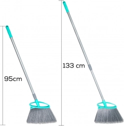 Ez az univerzális seprű mindennapi takarításhoz készült különböző felületeken – a járólaptól, betontól és kőtől egészen a műgyanta padlókig és fa padlókig. A rugalmas és sűrű szintetikus sörték hatékonyan összegyűjtik a port, homokot, morzsákat és szőrt, és a makacsabb szennyeződésekkel is megbirkóznak. A teleszkópos rúddal könnyedén beállíthatja az ideális hosszúságot a kényelmes és ergonomikus sepréshez.
