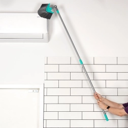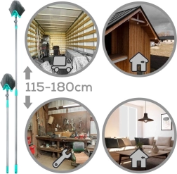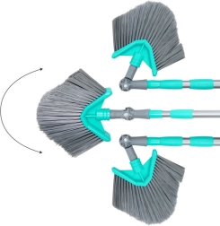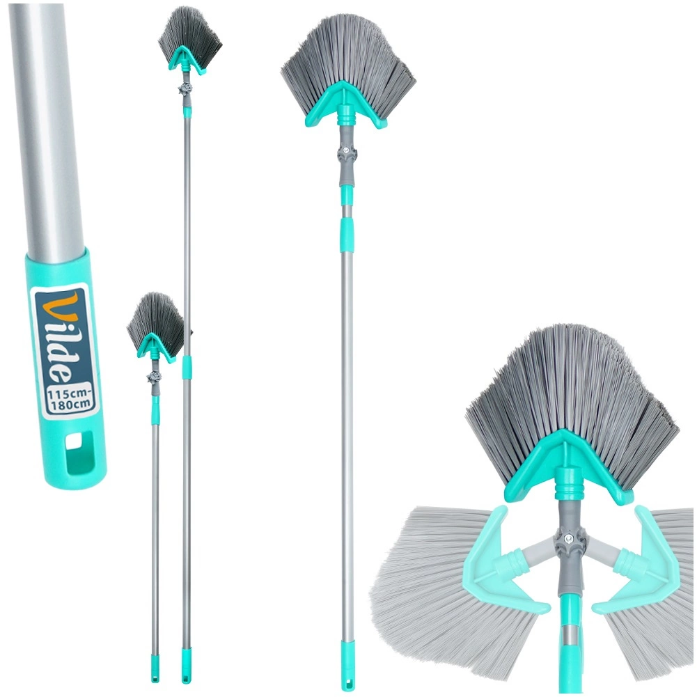 Ez az univerzális, teleszkópos nyelű seprű a nehezen hozzáférhető helyeken is megbirkózik a takarítással. A háromszög alakú fej forgatható és dönthető, így pontosan kitisztítja a sarkokat, a mennyezeti éleket és a felső polcokat. A fokozatmentesen állítható 115–180 cm-es hossz könnyen igazítható az igényeihez, és csökkenti a létra használatának szükségességét.