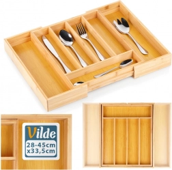 Tegyen rendet a fiókban végleg. Az állítható bambusz evőeszköztartó könnyen a fiókja szélességéhez igazítható 28 és 45 cm között, így különböző konyhabútorokban is tökéletesen elfér. A természetes bambuszból készült masszív szerkezet tartós, higiénikus és könnyen tisztítható.
