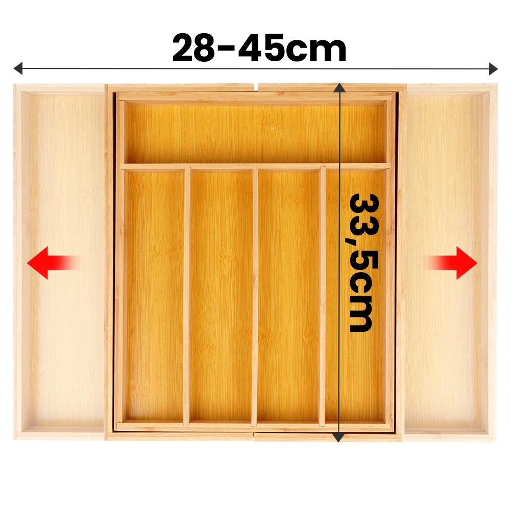 A 28 és 45 cm között bővíthető kialakítás biztosítja, hogy a rendező pontosan illeszkedjen a fiókjába, és maximálisan kihasználja a rendelkezésre álló helyet.