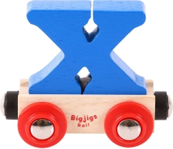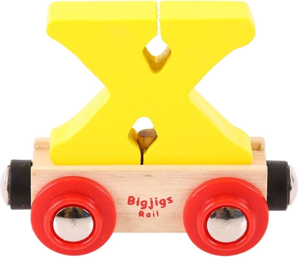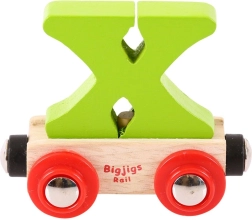 Bigjigs Rail fa kocsika X betűvel ideális oktató játékhoz. A gyerekek játszhatnak és egyidejűleg tanulhatják a betűket a kocsika tetején könnyen levehető betű segítségével.
