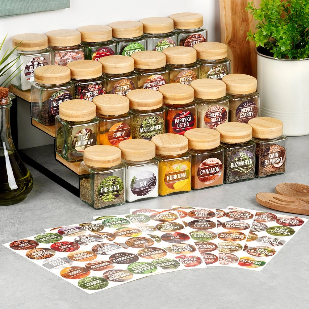 Az üveg fűszertartó készlet ideális a mindennapi főzéshez és a stílusos rendszerezéshez. Minden fűszertartó 100 ml űrtartalmú, átlátszó testtel a tartalom könnyű ellenőrzéséhez, valamint bambuszfából készült tetővel, amely természetes megjelenést ad és megbízható zárást biztosít. A mellékelt matricák a leggyakoribb fűszernövények és fűszerek neveivel segítenek gyorsan megtalálni a keresett alapanyagot.