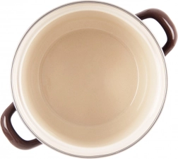 A Brown sorozat praktikus lábasa a klasszikus megjelenést megbízható teljesítménnyel ötvözi. A zománcozott felület higiénikus, ellenáll a foltoknak és a szagoknak, valamint kíméletes az allergiásokhoz. A belső bézs máz megkönnyíti a főzés nyomon követését, a rozsdamentes perem pedig növeli a tartósságot és az élettartamot.