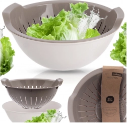 Praktikus 2 az 1-ben szűrő + tál 3 l űrtartalommal, amely megkönnyíti a leöblítést és a gyümölcs, zöldség és tészta szűrését. A belső szűrő kivehető, az alapanyagok leöblíthetők, majd visszahelyezhetők a tálba, ahol a felesleges víz szabadon elfolyik. BPA-mentes, minőségi műanyagból készült, mosogatógépben mosható, a tál pedig mikrohullámú sütőben is használható (+95 °C-ig).