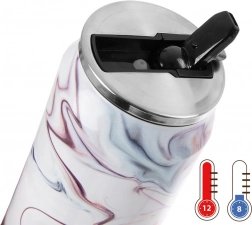 Stílusos, doboz formájú 500 ml-es termoszbögre, amely italait akár 12 órán át melegen és akár 8 órán át hidegen tartja. A duplafalú vákuumszigetelésnek, a rozsdamentes acélnak és a szivárgásmentes, felpattintható ivónyílású fedélnek köszönhetően ideális utazáshoz, munkába és iskolába. A pasztell márvány mintás dizájn és a karcsú kivitel könnyen illeszkedik a pohártartóba.