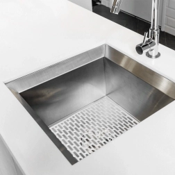 A mosogatóba helyezhető védőalátét egyszerű és hatékony megoldás a konyhai mosogató élettartamának meghosszabbítására. A perforált kialakításnak köszönhetően a víz szabadon elfolyik, nem gyűlik össze az alján, miközben a puha, mégis erős anyag tompítja az edények ütéseit és óvja a mosogató felületét.