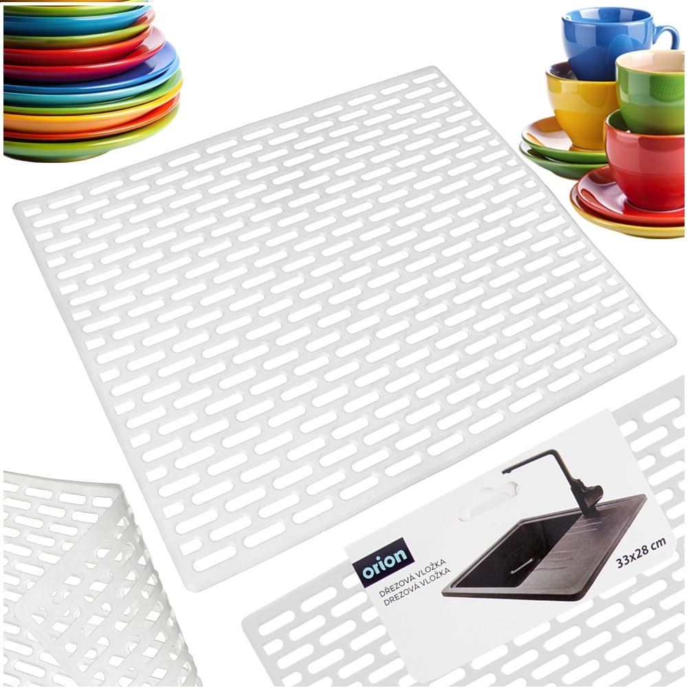 A 33 × 28 cm méretű praktikus mosogatóalátét hatékonyan védi a mosogató alját a karcolásoktól és benyomódásoktól. Tartós termoplasztikus anyagból készült, csúszásgátló felülettel, perforációval a szabad vízelvezetéshez, és nedvességállóságának köszönhetően ideális a mindennapi konyhai használathoz.