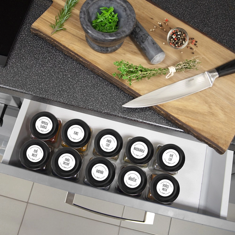 A minimalista, négyzetes dizájn kiválóan illik bármely konyhába – otthonokba és vendéglátó egységekbe egyaránt. A széles nyílás kényelmes szórást, töltést és mosást tesz lehetővé. A még jobb rendszerezéshez kiegészíthető öntapadós címkékkel.