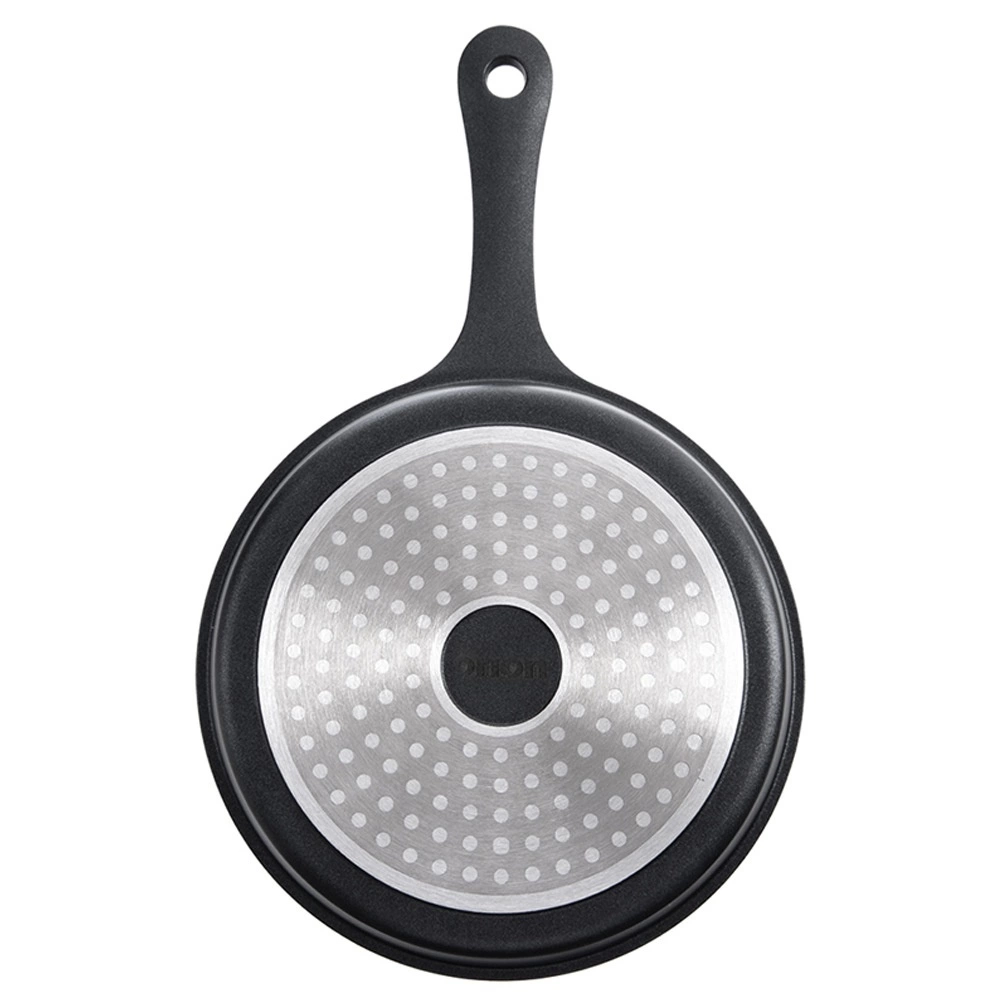 16 cm-es átmérőjének köszönhetően ideális gyors reggelikhez, köretekhez és kis adagokhoz – a tojástól és palacsintától kezdve a zöldségeken át a húsokig. A serpenyő gáz-, elektromos-, üvegkerámia-, halogén- és indukciós főzőlapokon is használható, sütőben is alkalmazható, és gond nélkül mosható a mosogatógépben.
