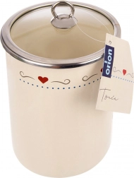 A TONCA sorozat praktikus és dekoratív doboza minőségi zománcozott acélból készült, krém árnyalatban, visszafogott szívmintával. A rozsdamentes peremű üvegfedél jó tömítést biztosít, és lehetővé teszi a tartalom azonnali ellenőrzését felnyitás nélkül.