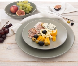 Stílusos, 20,5 cm átmérőjű desszertes tányér minőségi kerámiából, matt olívazöld színben. Mindennapi tálaláshoz és ünnepi alkalmakhoz is alkalmas, strapabíró, könnyen tisztítható és mosogatógépben és mikrohullámú sütőben is használható. A minimalista dizájnnak köszönhetően remekül illik különféle megterítésekhez.