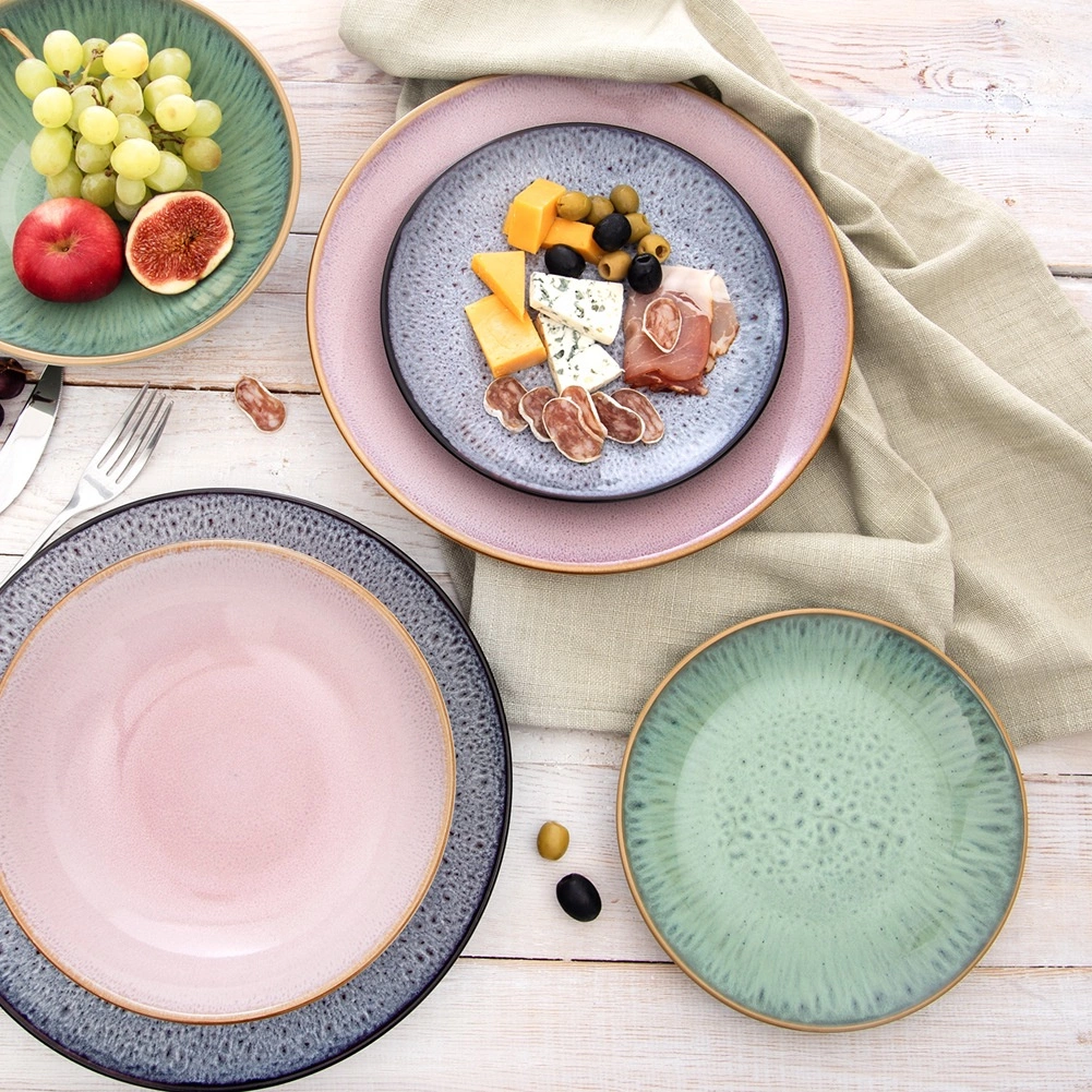 Stílusos 20,5 cm-es kerámia desszerttányér a Glaze kollekcióból, amely modern hangulatot kölcsönöz az asztalterítésnek. A zöld máz finom, látványos pettyezéssel és kontrasztos peremmel elegáns megjelenést ad, és könnyen párosítható más edényekkel.
