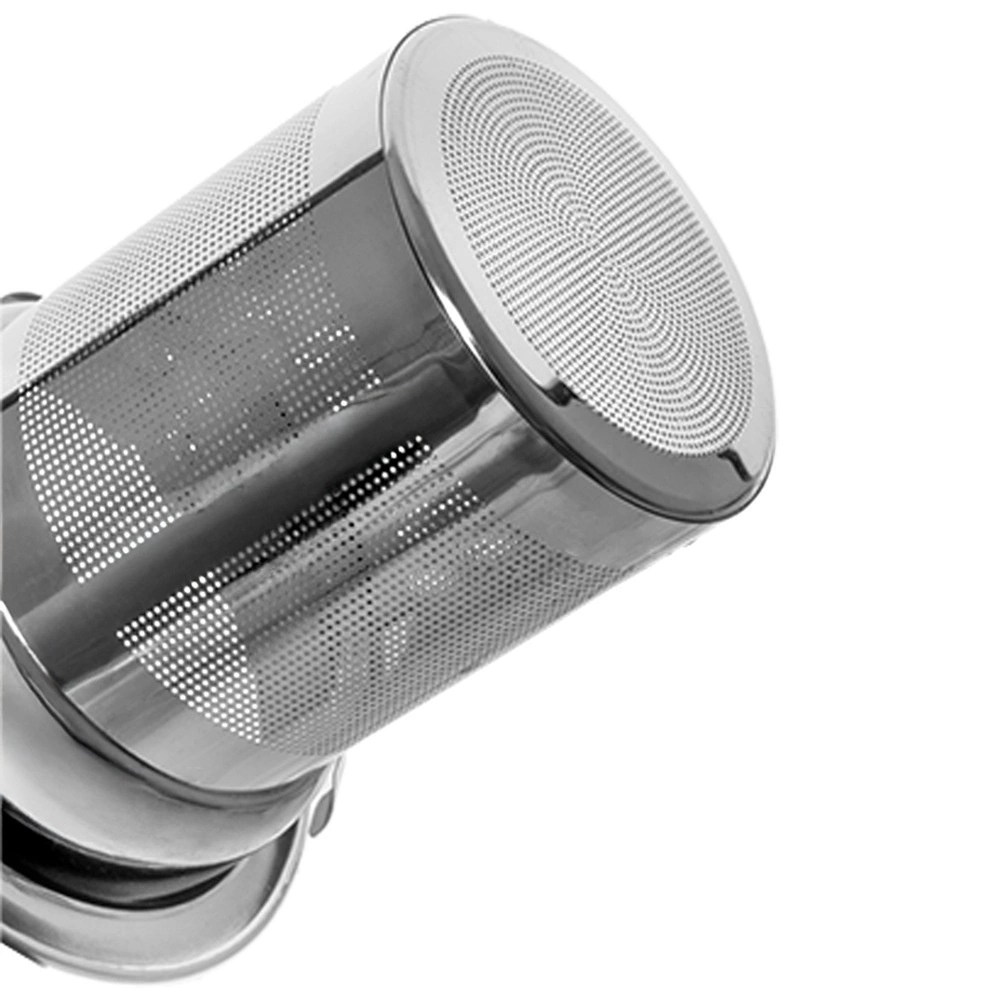 Az integrált rozsdamentes acél szűrő finom perforációja a legapróbb leveleket is felfogja, megkönnyítve a tiszta, zaccmentes szervírozást.