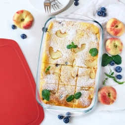 Ez a strapabíró üvegtál remek választás a mindennapi főzéshez. Könnyedén elkészíthet benne lasagnét, rakott ételeket, húsokat, valamint desszerteket, amelyek hűtést igényelnek. Az átlátszó üveg lehetővé teszi a sütés folyamatos ellenőrzését és az elegáns tálalást közvetlenül az asztalon.