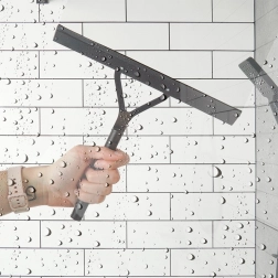 Széles lehúzóél és kényelmes markolat biztosítja a hatékony vízeltávolítást zuhanyajtókról, ablakokról és tükrökről, erőfeszítés nélkül.