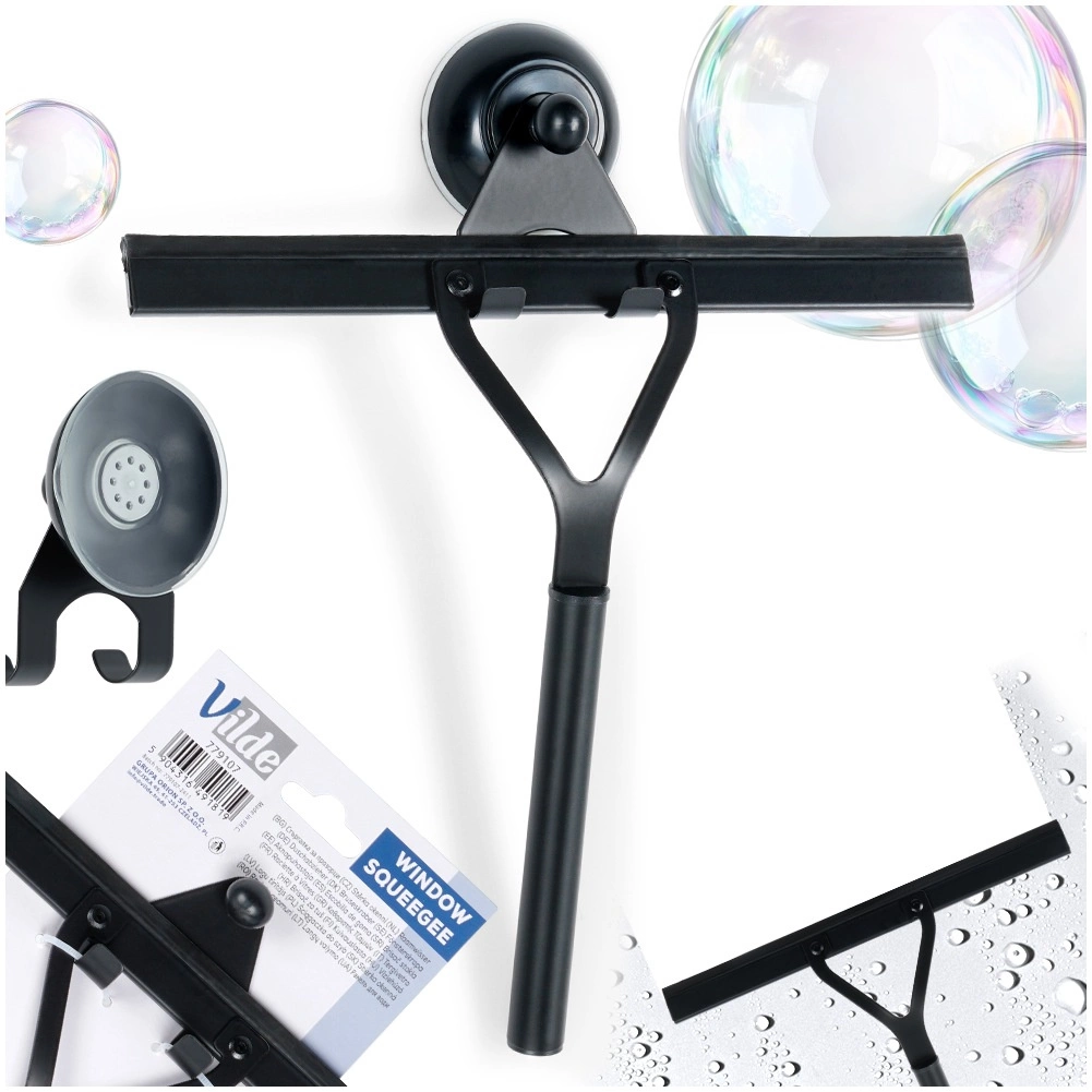 A matt fekete, masszív fémtest és a rugalmas gumicsík tiszta, csíkmentes üvegfelületet biztosít vízfoltok nélkül.