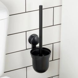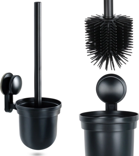 Praktikus szilikon WC-kefe fali tartóval és csepegtetővel, matt fekete kivitelben. Helytakarékos, megkönnyíti a padló tisztítását, és biztosítja a higiénikus tárolást. A rugalmas szilikon sörték hatékonyan tisztítanak a perem alatt is, a fém nyél kényelmes fogást ad, a fúrás nélküli szerelés pedig a 3M ragasztószalagnak köszönhetően gyors és megbízható.
