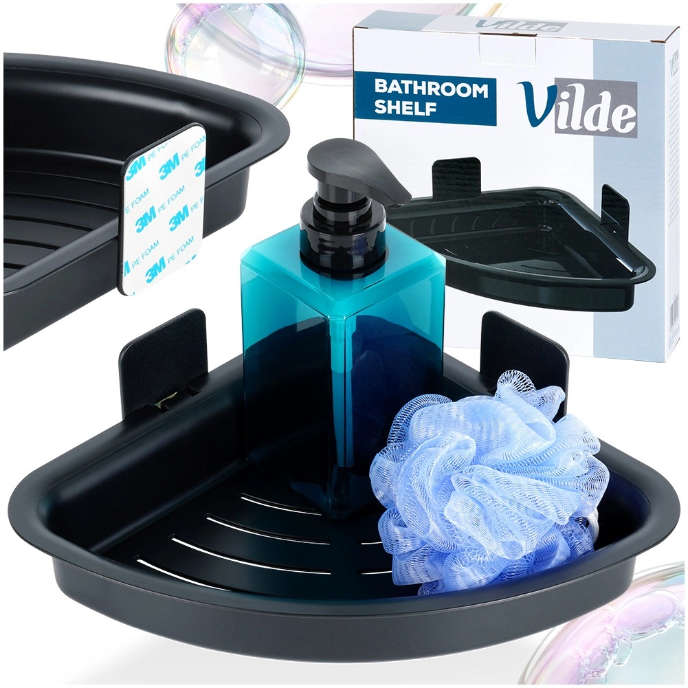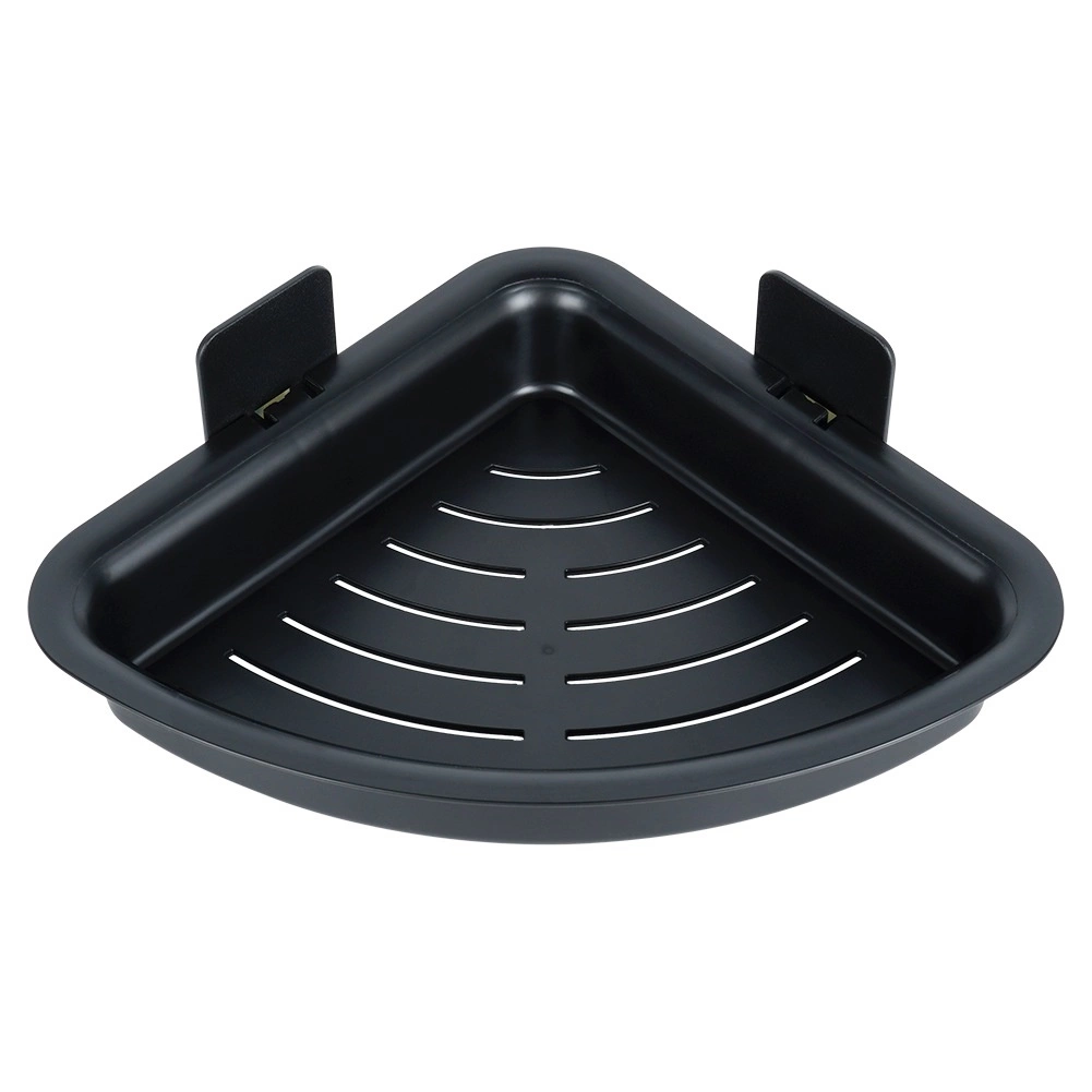 Az elegáns sarokpolc helyet takarít meg és rendet tart a zuhanyban. A matt fekete kivitel illik a modern enteriőrökhöz, az ellenálló anyag könnyen tisztítható, és megfelelő használat mellett éveken át tartós. Méretek tartókkal: 28 × 22 × 8 cm, a polc magassága: 4,5 cm.