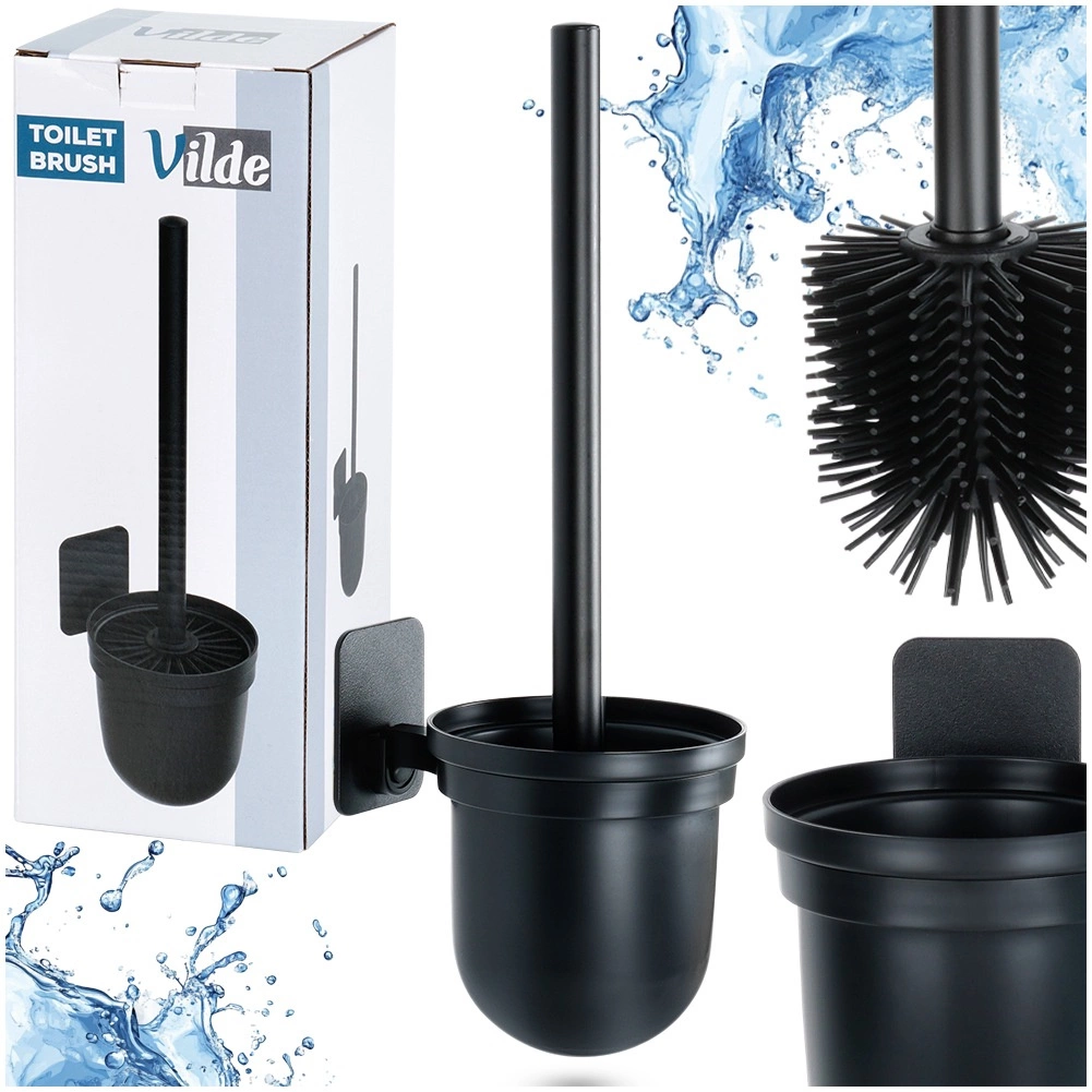 Praktikus, falra szerelhető WC-kefe csepegtetővel és szilikon sörtékkel elegáns fekete színben. A fali rögzítés helyet takarít meg, megkönnyíti a padló tisztítását, és higiénikus, gyors, hatékony tisztítást kínál. A rugalmas szilikon sörték nem károsítják a felületet, könnyen leöblíthetők, és nem tapadnak meg rajtuk a szennyeződések.