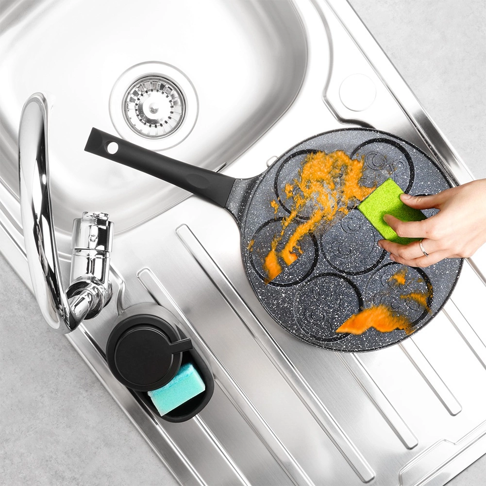 A 7 darab, 8 cm átmérőjű mélyedés mindegyike vidám dombornyomott mintával rendelkezik, amely játékos mini palacsintákat vagy emotikonos tojásokat készít – ideális reggelihez és uzsonnához.