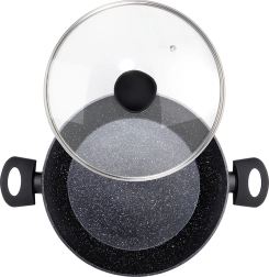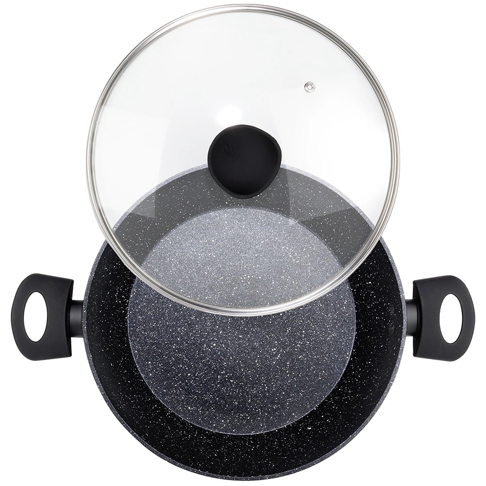 A BLACK LINE mély serpenyő modern dizájnt és mindennapi praktikusságot ötvöz. A masszív alumínium test gránit tapadásmentes réteggel megkönnyíti az egészséges ételek elkészítését és minimalizálja az odaégést. Az átlátszó üvegfedő gőzszeleppel lehetővé teszi a folyamat felügyeletét és az ételek szaftosságának megőrzését.