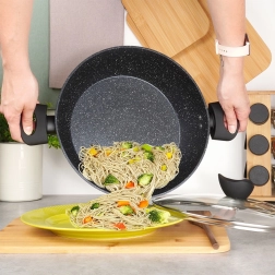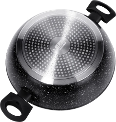 A speciális gránit réteg minimalizálja az odakapást, és lehetővé teszi a kisebb mennyiségű olaj használatát. Az étel könnyen elválik a felületről, a serpenyő pedig gyorsan tisztítható.