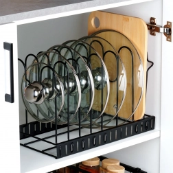 Tartsa a fedőket, tányérokat és vágódeszkákat elkülönítve és átláthatóan. A szervező helyet spórol, és felgyorsítja a gyakran használt edények elérését.