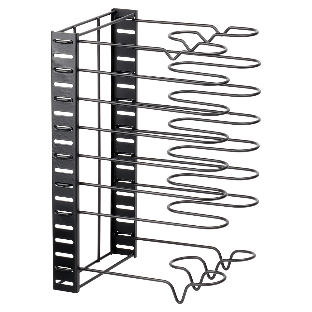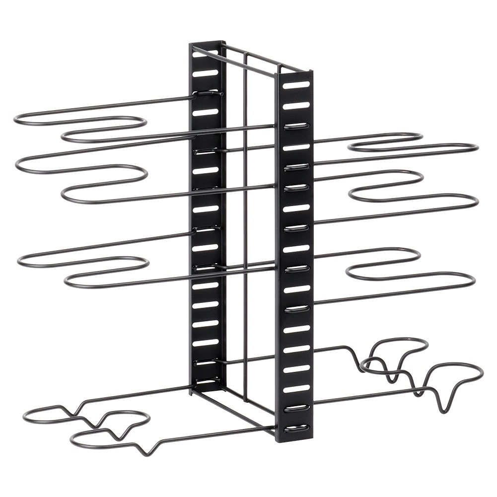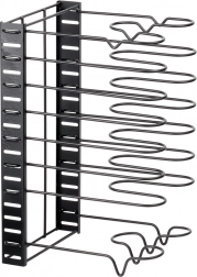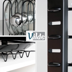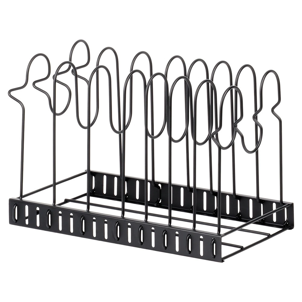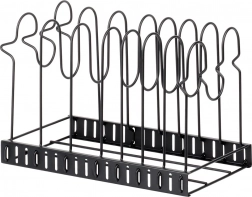 A stabil acél konstrukciónak és a tartós, fekete felületkezelésnek köszönhetően az állvány elegáns, masszív és könnyen tisztítható. Tökéletesen illik konyhaszekrényekbe és a konyhapultra is, helyet takarít meg, és védi az edényeket a horpadásoktól és karcolásoktól.
