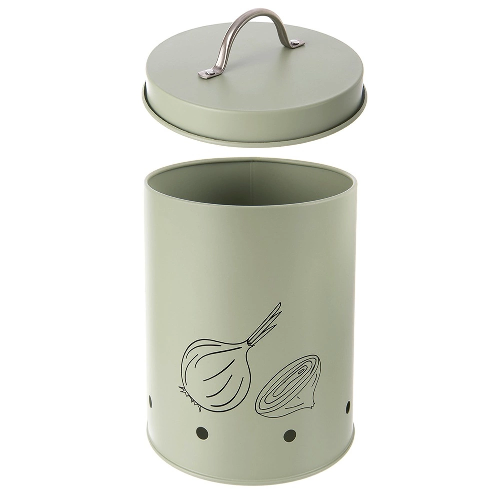 A Greenish sorozat ezen fém doboza tökéletes segítőtárs az élelmiszerek áttekinthető és esztétikus konyhai tárolásához. A 14 × 20,5 cm-es méret és a 2,4 l űrtartalom elegendő helyet kínál hagymának, fokhagymának és más zöldségeknek vagy gyümölcsöknek. A pasztellzöld felület a konyha dekoratív eleme lesz.