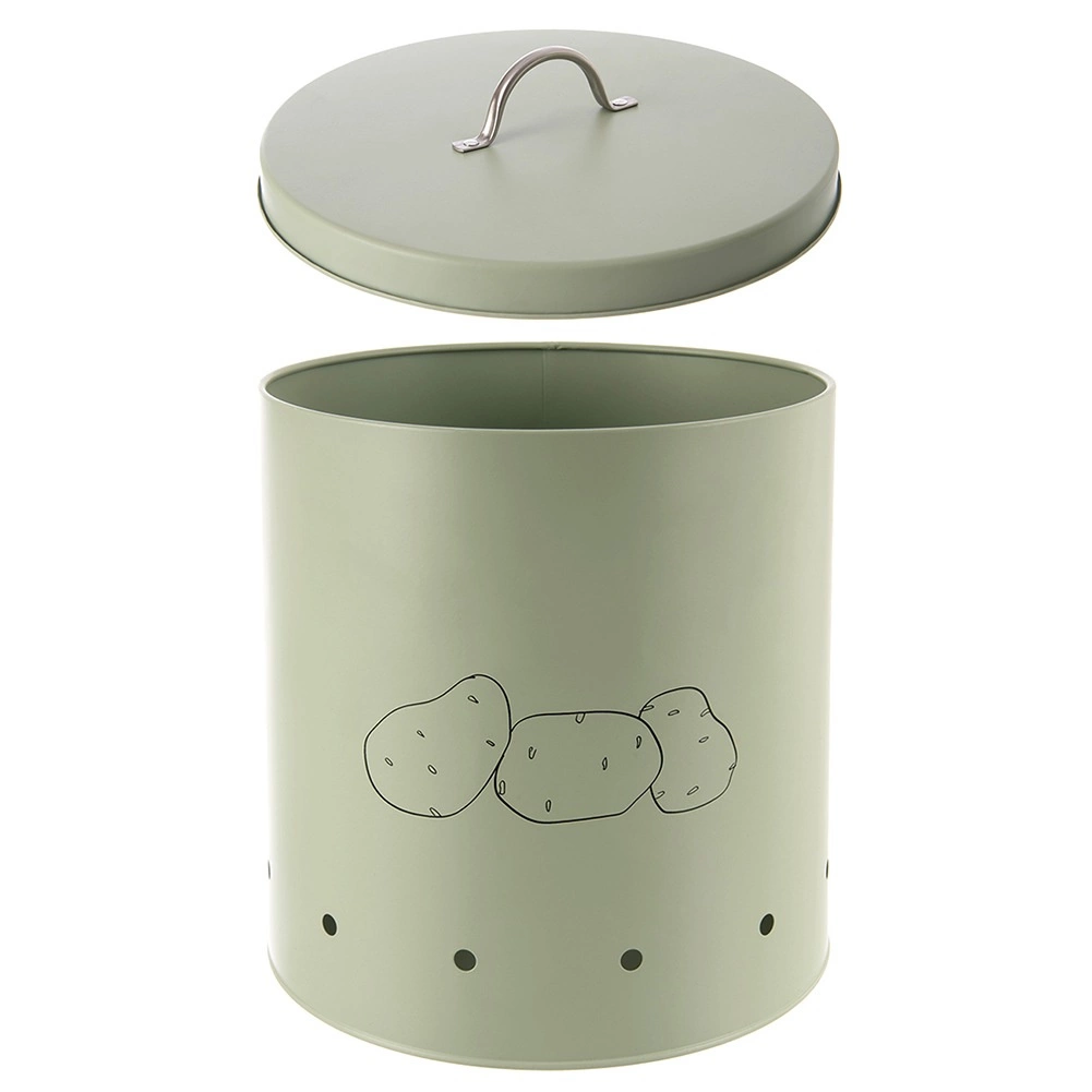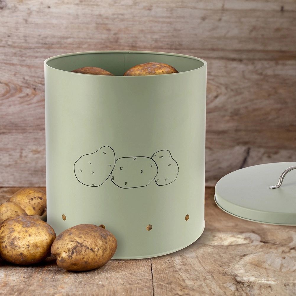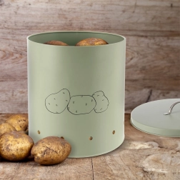 A praktikus fedél hatékonyan korlátozza a fény bejutását, és ezzel megelőzi a burgonya csírázását. Az előlapon lévő minimalista burgonya-grafika jelzi a tartalmat, és egyúttal dekoratív elemmel gazdagítja a konyhát.