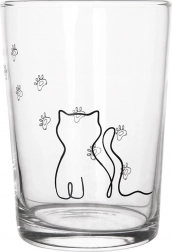 Aranyos, macskás mintájú pohár 500 ml űrtartalommal, ideális a mindennapi vízhez, limonádéhoz, gyümölcsléhez vagy tejhez. Minőségi, vastag falú üvegből készült, könnyen tisztítható, és mosogatógépben és mikrohullámú sütőben is használható.